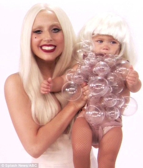 Gaga’s bubble dress worn throughout her Fame Ball tour in 2009 is also seen on one of the babies.