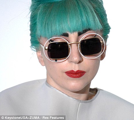 Gaga – who is notorious for her outlandish wardrobe choices – teamed the long-sleeved avant-garde design with a startling turquoise beehive, double rimmed sunglasses and white gloves.